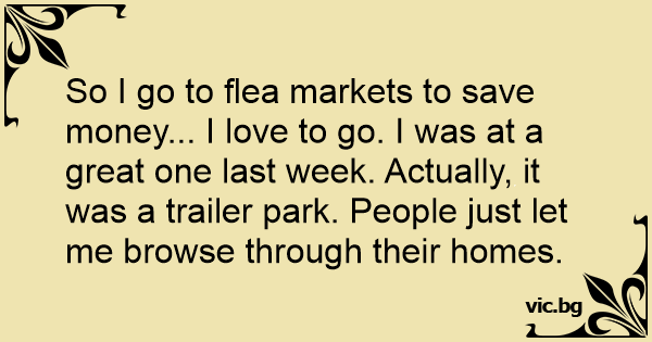 So I go to flea markets to save money... I love to go. I was at a great one last week. Actually, it was a trailer park. People just let me browse through their homes.