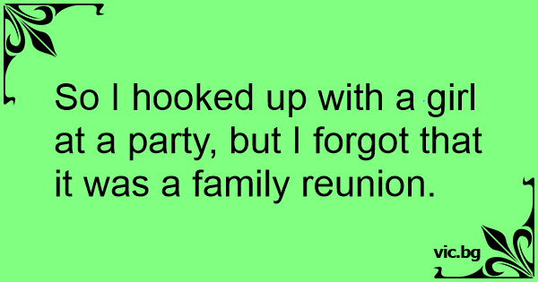 So I hooked up with a girl at a party, but I forgot that it was a family reunion.