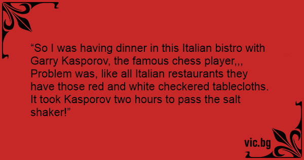 It took Kasporov two hours to pass the salt shaker!”