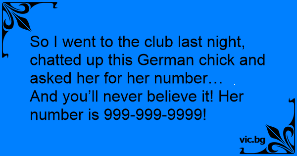 So I went to the club last night, chatted up this German chick and asked her for her number…