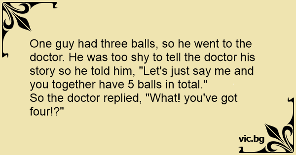 One guy had three ваlls, so he went to the doctor. He was too shy to tell the doctor his story so he told him, "Let's just say me and you together have 5 ваlls in total."