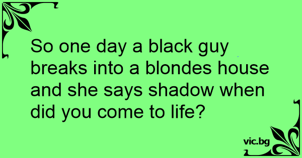 So one day a black guy breaks into a blondes house and she says shadow when did you come to life?