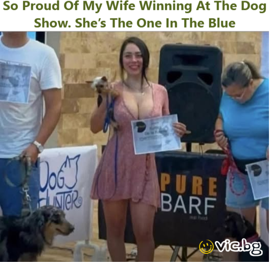 Толкова се гордея победа на жена ми на кучешкият конкурс. И синьото толкова много и ходи...