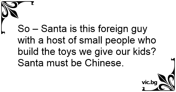 So – Santa is this foreign guy with a host of small people who build the toys we give our kids?