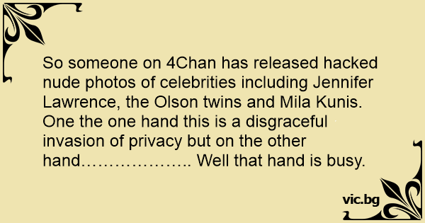 So someone on 4Chan has released hacked nudе photos of celebrities including Jennifer Lawrence, the Olson twins and Mila Kunis.