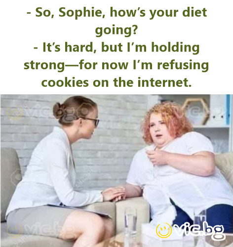 - Софи, как върви диетата? - Трудно е, но се държа засега — вече отказвам бисквитките в интернет.