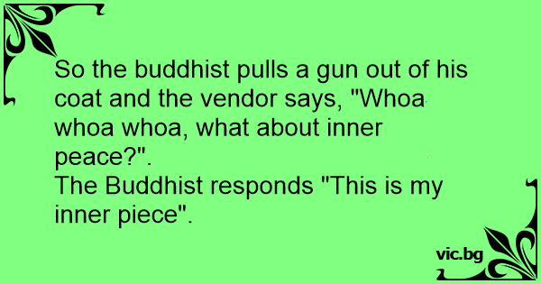 So the buddhist pulls a gun out of his coat and the vendor says, "Whoa whoa whoa, what about inner peace?".