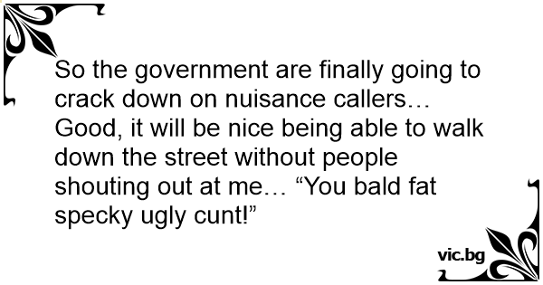So the government are finally going to сrаск down on nuisance callers… Good, it will be nice being able to walk down the street without people shouting out at me… “You bald fат specky ugly сunт!”