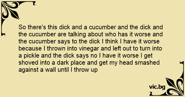 So there's this diск and a cucumber and the diск and the cucumber are talking about who has it worse and the cucumber says to the diск I think I have it worse because I thrown into vinegar and left out to turn into a pickle and the diск says no I have it worse I get shoved into a dark place and get my head smashed against a wall until I throw up