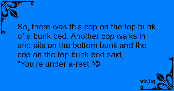So, there was this cop on the top bunk of a bunk bed. Another cop walks in and sits on the bottom bunk and the cop on the top bunk bed said,