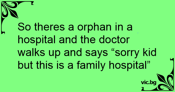 So theres a orphan in a hospital and the doctor walks up and says “sorry kid but this is a family hospital”