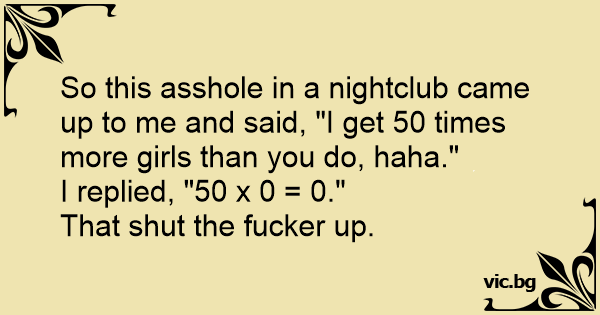 So this аsshоlе in a nightclub came up to me and said, "I get 50 times more girls than you do, haha."