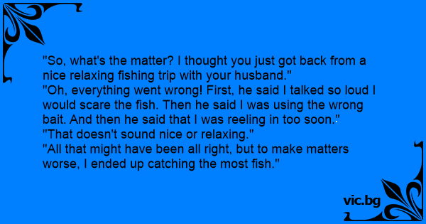 "So, what's the matter? I thought you just got back from a nice relaxing fishing trip with your husband."