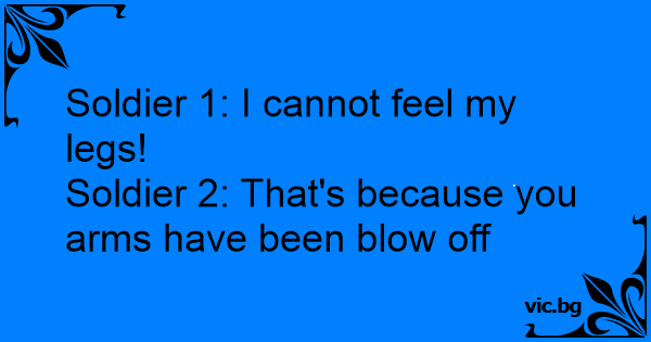 Soldier 1: I cannot feel my legs!