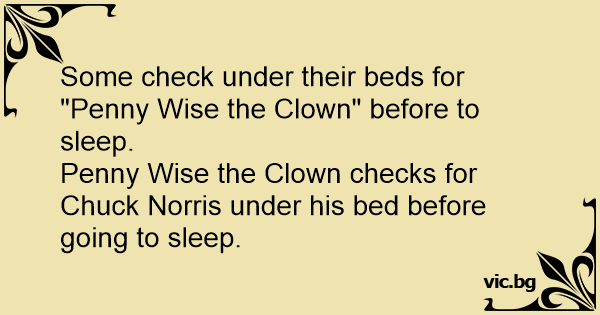 Penny Wise the Clown checks for Chuck Norris under his bed before going to sleep.