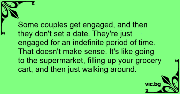 Some couples get engaged, and then they don't set a date. They're just engaged for an indefinite period of time. That doesn't make sense. It's like going to the supermarket, filling up your grocery cart, and then just walking around.