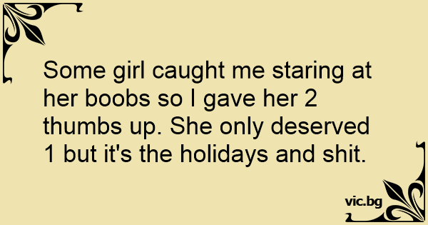 Some girl caught me staring at her воовs so I gave her 2 thumbs up. She only deserved 1 but it's the holidays and shiт.