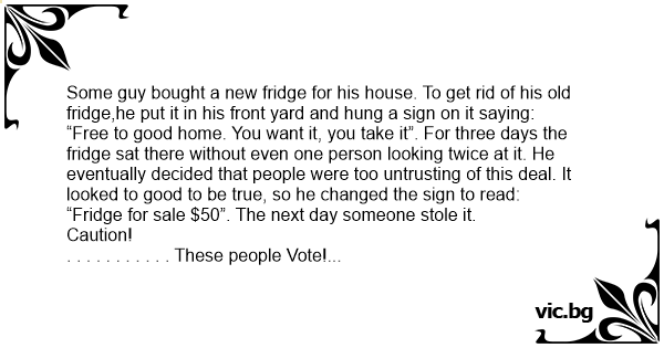 Some guy bought a new fridge for his house. To get rid of his old fridge,he put it in his front yard and hung a sign on it saying: