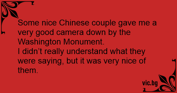 Some nice Chinese couple gave me a very good camera down by the Washington Monument.
