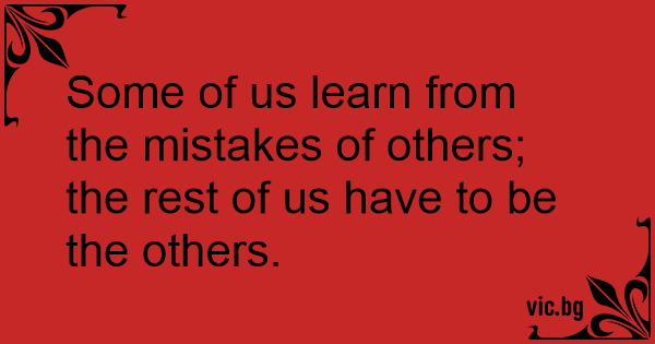 Some of us learn from the mistakes of others; the rest of us have to be the others.