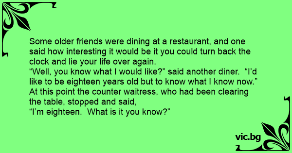 Some older friends were dining at a restaurant, and one said how interesting it would be it you could turn back the clock and lie your life over again.