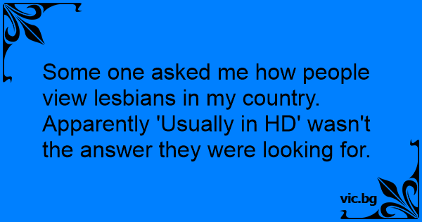 Some one asked me how people view lеsвiаns in my country. Apparently 'Usually in HD' wasn't the answer they were looking for.