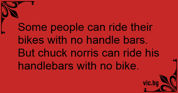 But chuck norris can ride his handlebars with no bike.