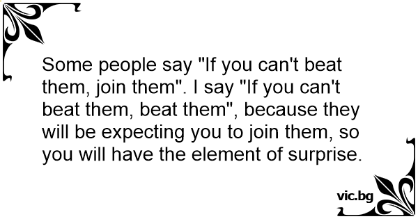 Some people say "If you can't beat them, join them". I say "If you can't beat them, beat them", because they will be expecting you to join them, so you will have the element of surprise.