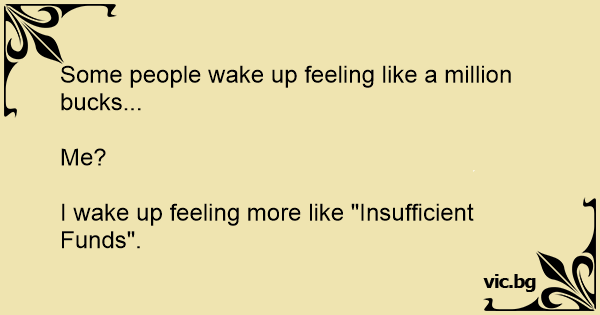 I wake up feeling more like "Insufficient Funds".