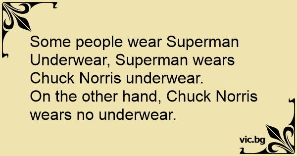 Some people wear Superman Underwear, Superman wears Chuck Norris underwear.