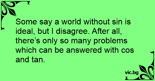 Some say a world without sin is ideal, but I disagree. After all, there’s only so many problems which can be answered with cos and tan.