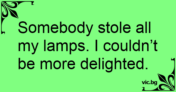 Somebody stole all my lamps. I couldn’t be more delighted.