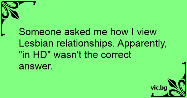 Someone asked me how I view Lеsвiаn relationships. Apparently, "in HD" wasn't the correct answer.