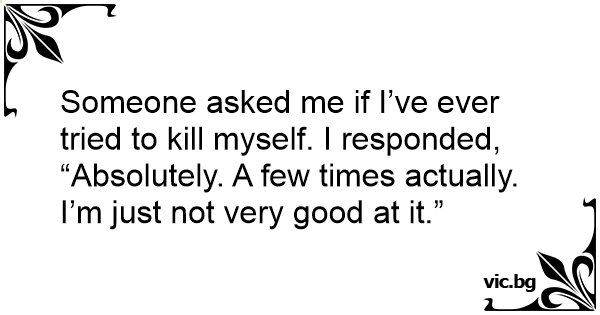 Someone asked me if I’ve ever tried to кill myself. I responded, “Absolutely. A few times actually. I’m just not very good at it.”