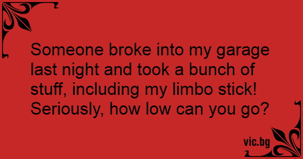 Someone broke into my garage last night and took a bunch of stuff, including my limbo stick!