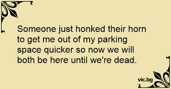 Someone just honked their horn to get me out of my parking space quicker so now we will both be here until we're dead.