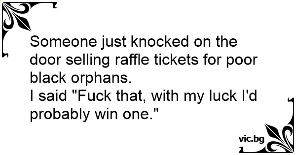 Someone just knocked on the door selling raffle tickets for poor black orphans.