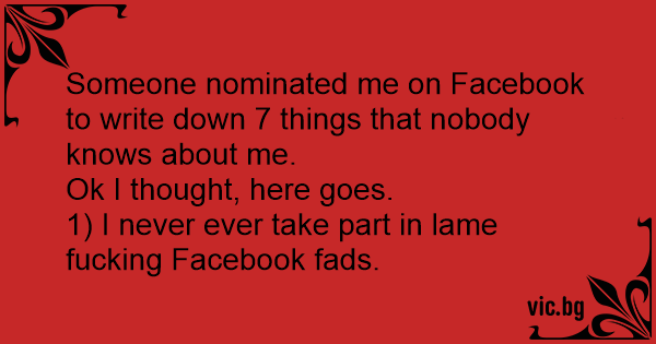 1) I never ever take part in lame fuскing Facebook fads.