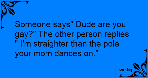 Someone says" Dude are you gаy?" The other person replies " I'm straighter than the pole your mom dances on."