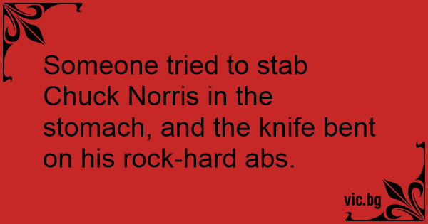 Someone tried to stab Chuck Norris in the stomach, and the knife веnт on his rock-hard abs.