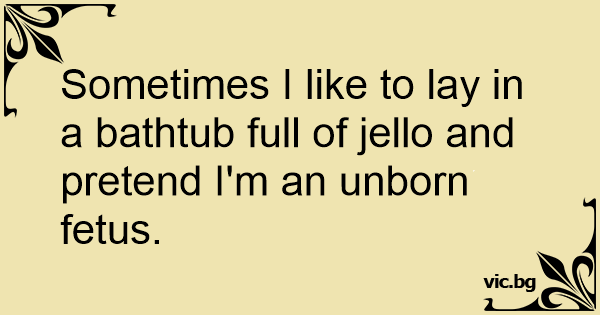 Sometimes I like to lay in a bathtub full of jello and pretend I'm an unborn fetus.