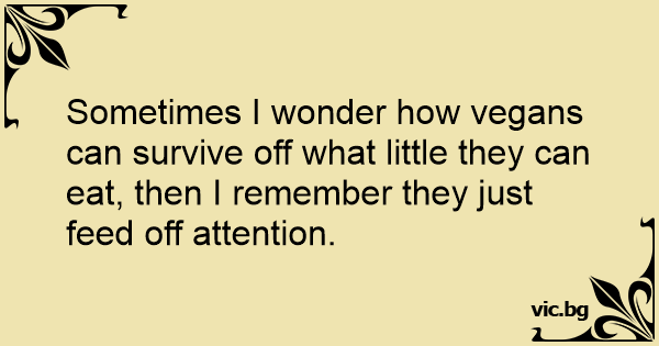 Sometimes I wonder how vegans can survive off what little they can eat, then I remember they just feed off attention.