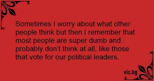 Sometimes I worry about what other people think but then I remember that most people are super dumb and probably don’t think at all, like those that vote for our political leaders.