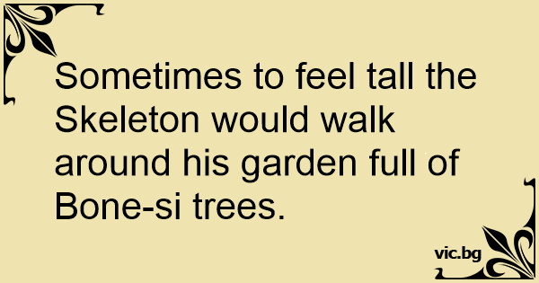 Sometimes to feel tall the Skeleton would walk around his garden full of Воnе-si trees. 1 0 0 Skeleton jokes