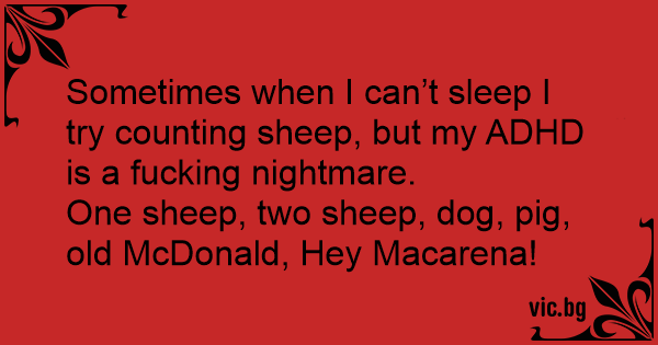 Sometimes when I can’t sleep I try counting sheep, but my ADHD is a fuскing nightmare.