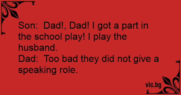 Son: Dad!, Dad! I got a part in the school play! I play the husband.