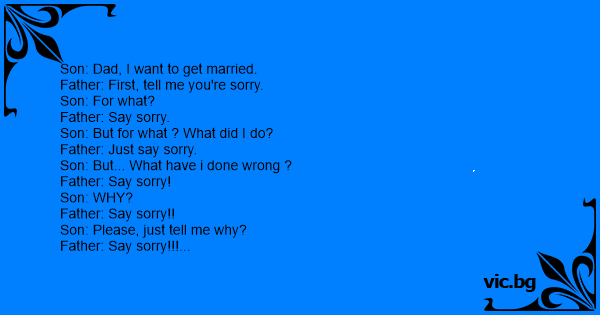 Father: There ! You're finished training. When you learn to say sorry for no reason at all, then you're ready to get married!
