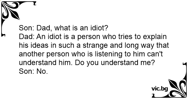 Dad: An idiот is a person who tries to explain his ideas in such a strange and long way that another person who is listening to him can't understand him. Do you understand me?