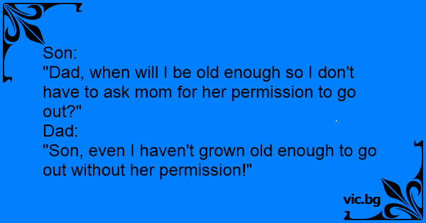 "Dad, when will I be old enough so I don't have to ask mom for her permission to go out?"