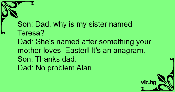 Dad: She's named after something your mother loves, Easter! It's an anagram.